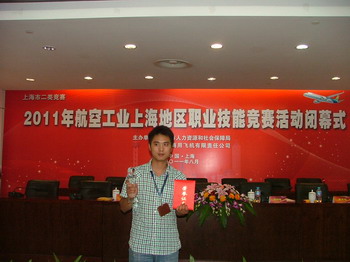 由上海市人力资源和社会保障局和中国商用飞机责任有限公司联合主办,中国商飞上海飞机制造有限公司承办的“2011年上海航空行业职业技能竞赛”于4月至8月在上海举行。我院由机电工程系、中德学院汪明瑾、王宁、杨佳伟等八名同学为参赛选手,张晓莉、李秀霞、马加年、倪同强(兼职)为指导教师共同组成了参赛队,代表学院参加该项大赛,其中,汪明瑾同学荣获大赛二等奖。