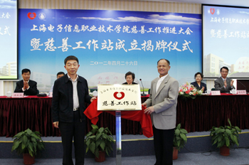 揭牌仪式上,曹雅琳副秘书长为我院慈善义工队授旗并作重要讲话,上海仪电控股(集团)公司党委副书记、纪委书记、工会主席田原、上海市慈善基金会副秘书长叶恩国为我院“慈善工作站”揭牌,奉贤区慈善分会副会长戚爱国、学院党委书记、院长杨秀英为我院“经常性社会捐助接收点”揭牌。