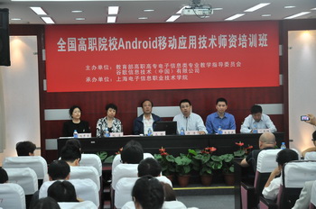2012年5月13日,全国高职院校Android移动应用技术师资培训班在我院徐汇校区开班,教育部高职高专电子信息类专业教学指导委员会主任高林、上海市教委高教处副处长许涛、教育部高职高专电子信息类专业教学指导委员会秘书长鲍洁、谷歌信息技术(中国)有限公司高校关系经理朱爱民、上海电子信息职业技术学院党委书记、院长杨秀英等出席开班仪式。
