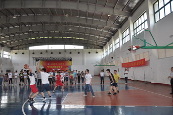 此次决战的两支队伍分别是机电系代表队和经管系代表队。12点比赛准时开始,所有的队员都迅速进入状态,个个精神饱满,斗志昂扬。经过初赛的对抗,每位队员的技巧更加娴熟,速度更加敏捷,投篮更加精准。上半场,经管系代表队稳稳地将球控制在自己手中,比赛过程中,李铭老师一次次完美的运球、过人、上篮,程健老师帅气利落的动作引爆了现场的气氛,全场的欢呼声此起彼伏。机电系代表队也不甘示弱,队员间积极配合,奋力拼抢,攻防有序,稳扎稳打,突破上篮,一度8:8持平,最终上半场经管系代表队以10:9比分暂时领先。下半场比赛中,机电系代表队队员发起反击,将比分追至13平。最后,李旺老师一个漂亮的罚篮锁定胜局,使得机电系代表队最终以14比13的微弱优势赢得了比赛。本场比赛双方队员都发挥出了最佳水平,全场高潮迭起。
