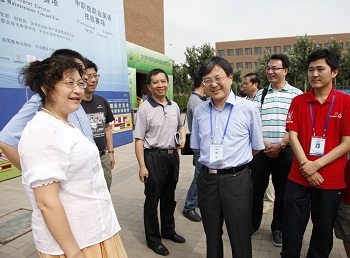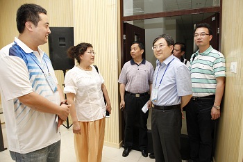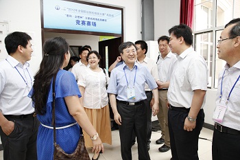 6月27日,上海市教委副主任印杰、高教处许涛副处长及徐国良调研员等领导一行,专程赶赴2012年全国职业院校技能大赛竞赛现场,关心慰问上海参赛代表队,并在我院党委书记、院长杨秀英的陪同下,观摩我院参赛团队比赛,与我院参赛师生亲切交谈。