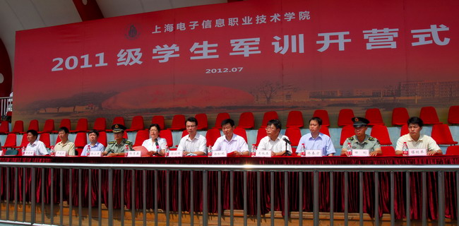 2012年7月2日,我院在室外田径运动场举行2011级学生军训入营式。学院领导杨秀英、顾剑锋、徐松鹤、严晓华、吴依本和军训团团长、上海警备区某部领导出席入营式,2011级学生受训学员近2300人参加入营式。