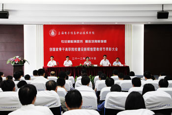 2012年9月10日,学院以“专注耕耘满园芳 精心培育桃李香”为主题,隆重召开创国家骨干高职院校建设新辉煌暨教师节表彰大会,表彰在国家骨干高职院校建设和学院内涵发展中作出突出贡献的先进集体和个人。学院领导杨秀英、顾剑锋、徐松鹤、严晓华、周俊瑜和全院教职工三百多人参加大会。