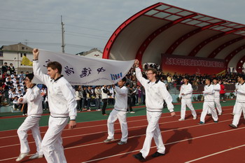 开幕式上,国旗队、校旗队、鲜花队、教师队伍和各系部、二级学院运动员方队伴着雄壮的进行曲先后精神抖擞、步伐整齐地经过大会主席台,进入运动场。