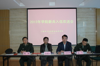 12月14日上午,2012年学院冬季新兵入伍欢送会在中德A207会议室举行。学院党委副书记、副院长顾剑锋,学院副院长吴依本,学院人民武装部部长张涛,相关系部党支部书记、辅导员,入伍学生及其家长参加了此次欢送会。欢送会由学院人民武装部赵飞主持。