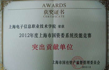 2012年12月21日下午,市国资委召开了技能人才队伍建设工作推进暨2012年度技能竞赛总结表彰大会,市国资委、市人社局、市总工会及各集团公司相关领导参加了会议,国资委综合管理处蔡国民副处长宣读了表彰2012年度市国资委职业技能竞赛活动获奖选手和获奖单位的决定,我院和上海仪电控股(集团)公司(INESA)双双被国资委授予“2012年度上海市国资委系统技能竞赛突出贡献单位”奖,仪电控股人力资源部陈靖总经理在会上代表竞赛承办单位作了主题发言。