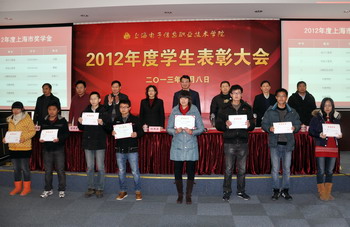 党委副书记、副院长顾剑锋宣读《上海电子信息职业技术学院关于表彰2012年度优秀学生的决定》。学院40个获奖集体和1477名获奖个人受到表彰。