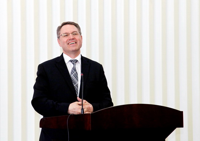 德方嘉宾德国卡尔•彼得•欧博迈耶学校校长鲁道夫•沙赫尔、德国巴伐利亚州文教部职教司司长格尔曼∙登内博格、德国汉斯•赛德尔基金会项目负责人汉斯•凯夫勒、德国兰茨胡特应用技术大学弗里茨•珀恩巴赫、德国工商大会(AHK)上海代表处职业教育总监白丽塔先后致辞,对我院学生能获得原版的德国技术员证书表示祝贺,对和我院的合作表示满意,希望今后双方继续努力,不断推动中德职业教育合作项目前进。(李涛/文 傅娟、吴亚人/摄影)
