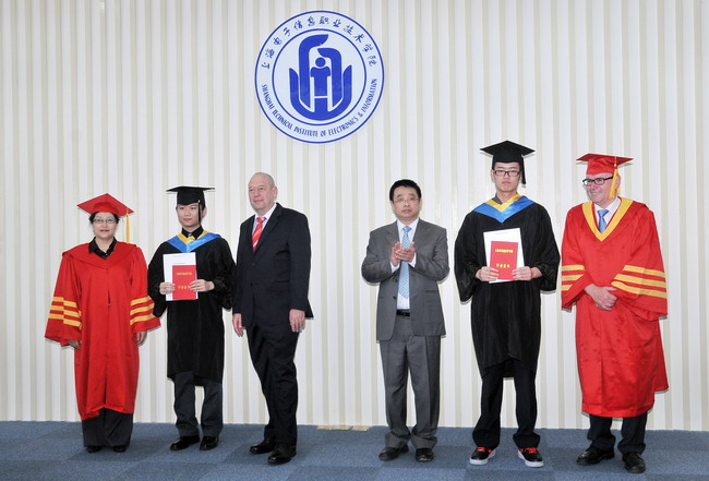 2013年6月3日,学院隆重举行上海电子信息职业技术学院中德学院中德职业教育合作项目首届技术员班毕业典礼,这标志着我院首批2013届TS班学生通过三年的刻苦努力,圆满完成了大学学业和技术员课程的学习,顺利毕业。
