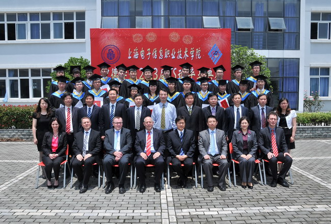 2013年6月3日,学院隆重举行上海电子信息职业技术学院中德学院中德职业教育合作项目首届技术员班毕业典礼,这标志着我院首批2013届TS班学生通过三年的刻苦努力,圆满完成了大学学业和技术员课程的学习,顺利毕业。