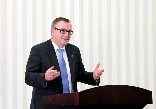 德方嘉宾德国卡尔•彼得•欧博迈耶学校校长鲁道夫•沙赫尔、德国巴伐利亚州文教部职教司司长格尔曼∙登内博格、德国汉斯•赛德尔基金会项目负责人汉斯•凯夫勒、德国兰茨胡特应用技术大学弗里茨•珀恩巴赫、德国工商大会(AHK)上海代表处职业教育总监白丽塔先后致辞,对我院学生能获得原版的德国技术员证书表示祝贺,对和我院的合作表示满意,希望今后双方继续努力,不断推动中德职业教育合作项目前进。(李涛/文 傅娟、吴亚人/摄影)