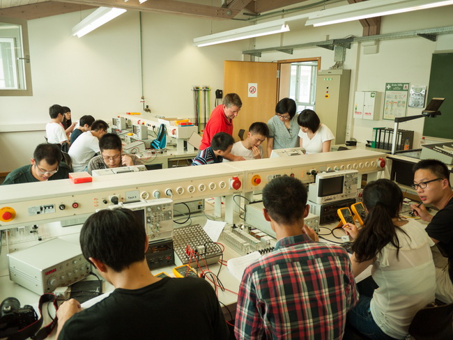 兰茨胡特应用技术大学作为我院传统友好合作学校,为游学团准备了内容丰富的学习和交流参观活动。学习内容主要是完成兰大为我们特意准备的4门专业特色实训课程,分别是微控制器应用、测量技术、机器人和调节技术。37名学生分三组,轮流参与各门实训课程,总课时达到了120学时。