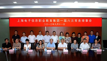 2013年9月11日,上海电子信息职教集团19家常务理事单位的常务理事齐聚上海仪电控股(集团)公司,参加一届六次常务理事会。上海市教委职教处主持工作的副处长劳晓芸、副处长戴晓芙和职教集团名誉理事长、上海市人民政府参事瞿钧先生也应邀出席了会议。会议分别由职教集团副理事长、上海电子信息职业技术学院党委书记、院长杨秀英女士和职教集团新任理事长、上海仪电控股(集团)公司党委书记、董事长王强先生主持。