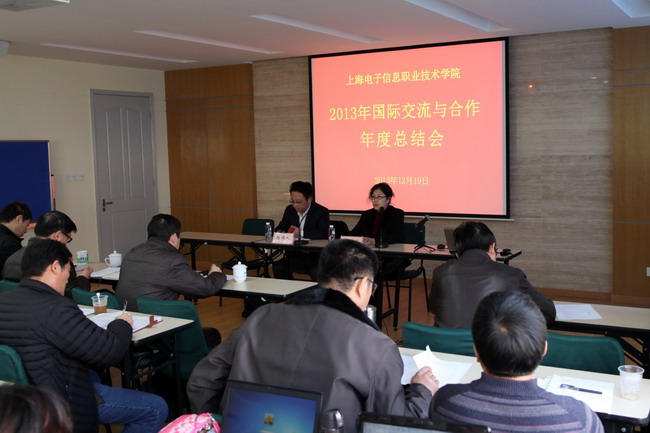 12月19日,学院召开了国际交流与合作工作年度总结大会,市教委国际交流处杨伟人处长应邀出席,学院领导、骨干校项目组主要成员、相关教学及职能部门中层领导以及2013年度所有出国境团组团长及成员代表参加了会议。