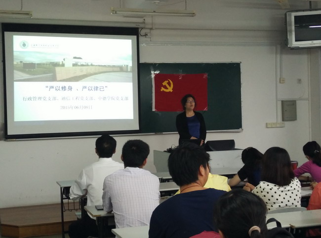 根据学院党委深入开展“三严三实”专题教育实施方案及关于“三严三实”专题教育学习部署,2015年6月8日,中德学院党支部、通信与信息工程系党支部、行政管理党支部邀请学院党委书记、院长杨秀英为全体党员上了一堂“严以修身 、严以律已” 的“三严三实”专题教育党课,来自三个党支部的全体党员、部门领导及入党积极分子接受了党课教育。