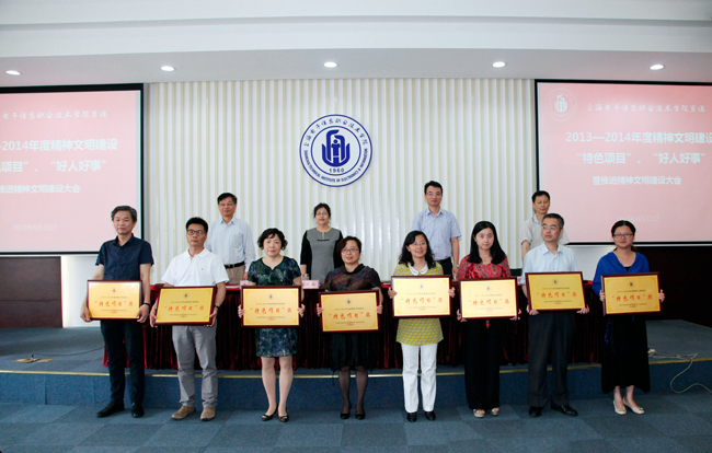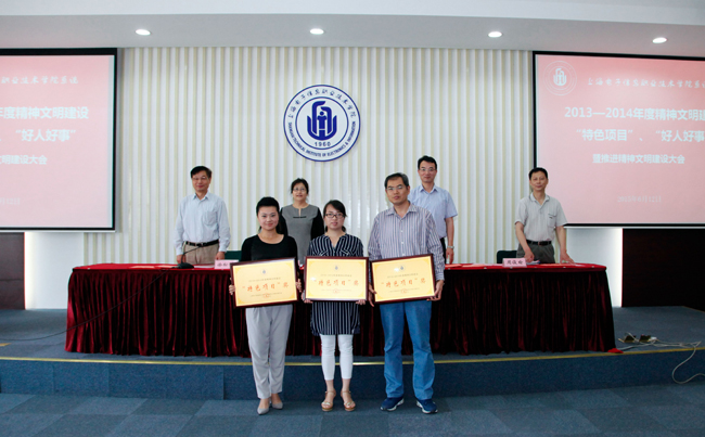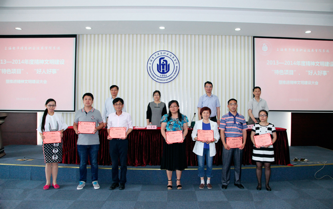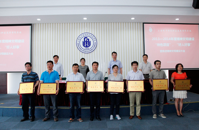 为表彰先进,树立典型,在全院形成争创文明、崇尚文明的浓厚氛围,将学院的精神文明建设进一步推向深入。2015年6月12日上午,学院召开表彰2013—2014年度精神文明建设“特色项目”、“好人好事”暨推进精神文明建设大会,对党委办公室《校园文化建设与传播项目》等27个精神文明建设“特色项目”,孙云波等7件好人好事进行表彰,学院领导杨秀英、顾剑锋、徐松鹤、周俊瑜及全体中层以上干部、各部门职工代表参加表彰大会。