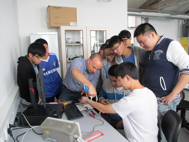 兰茨胡特应用技术大学作为我院传统友好合作学校,为游学团准备了内容丰富的学习和交流参观活动。学习内容主要是完成兰大为我们特意准备的7门专业特色实训课程,分别是能源技术应用、测量技术、机器人、医学成像技术、生物传感器技术、数字电路、互联网协议和可编程序控制器。为了增强学生对德国语言和文化的了解,德方还特意安排了8课时的德语课程。24名学生分2组,轮流参与各门实训课程和语言课程,总课时达到了104学时。