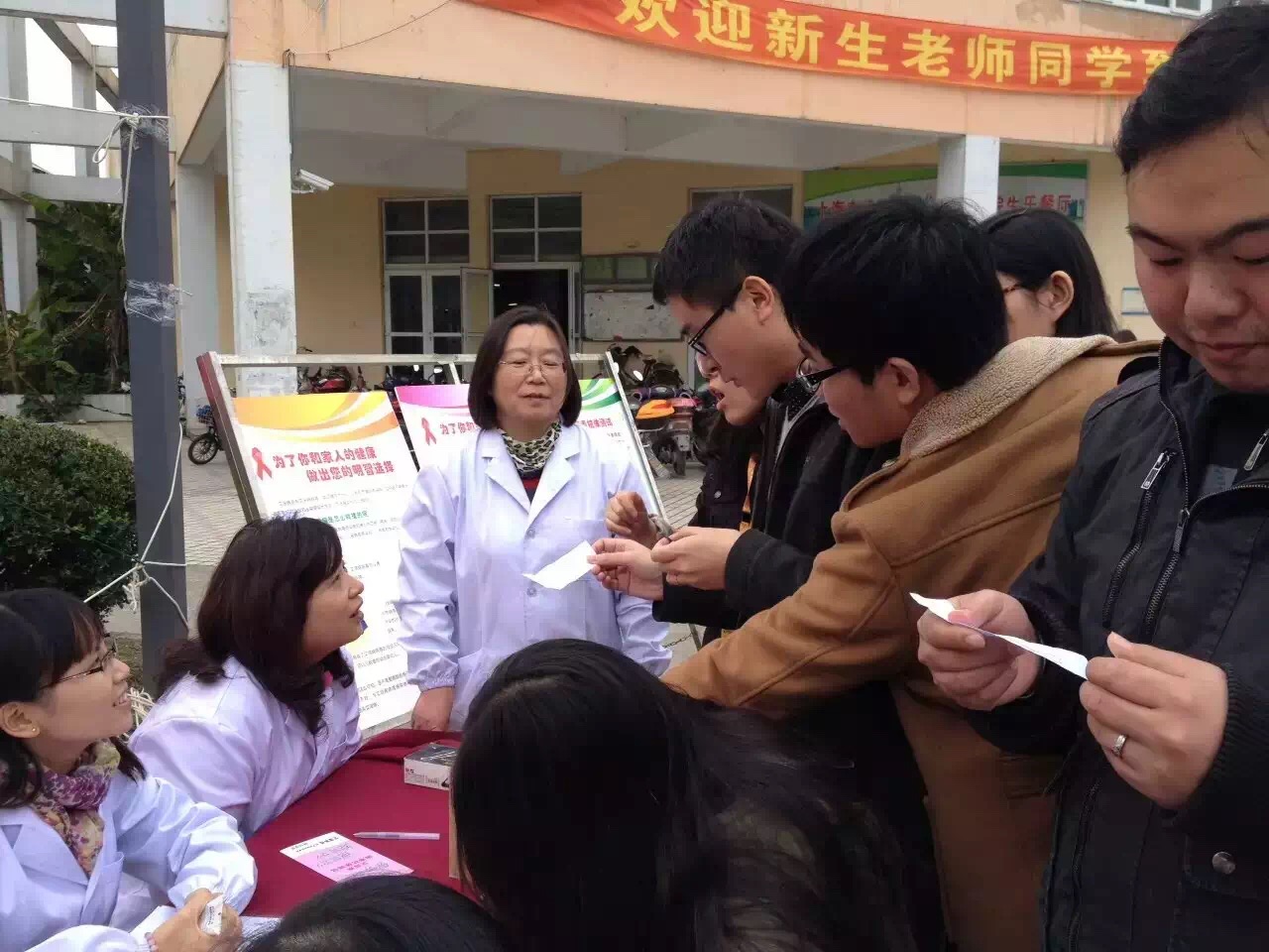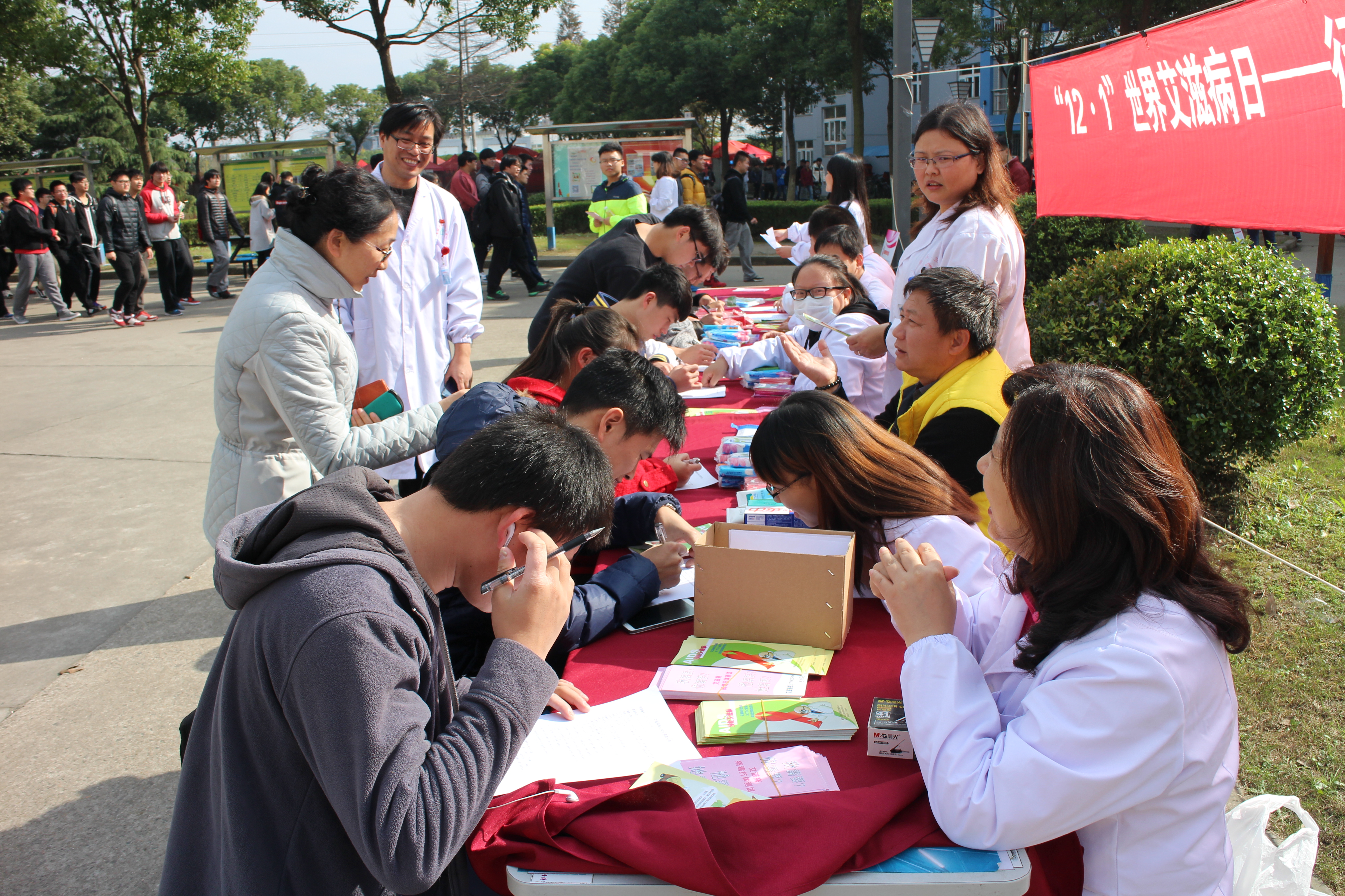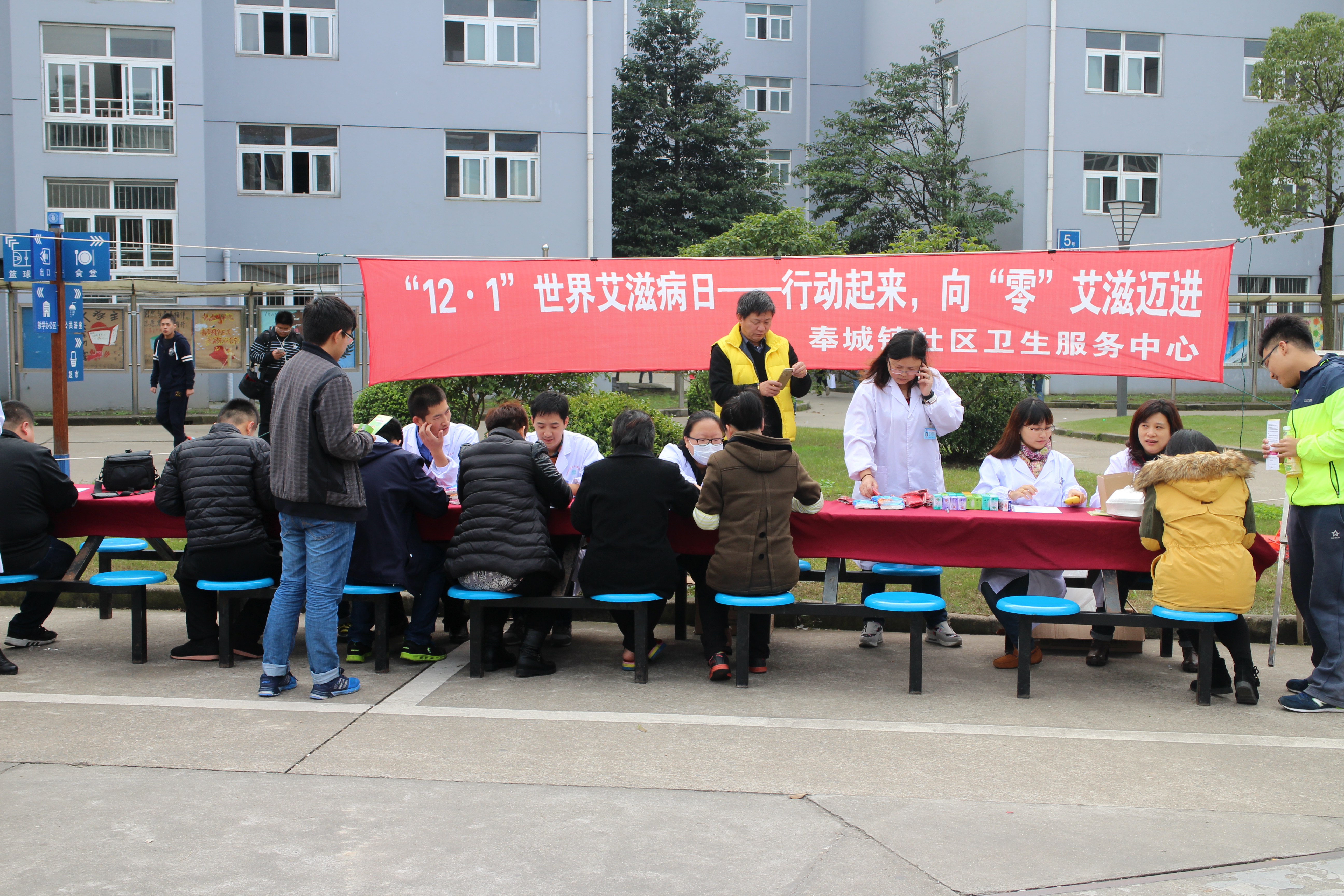 今年12月1日是第28个“世界艾滋病日”,为了加强防治艾滋病的宣传,普及预防艾滋病的科学知识,我们邀请奉城社区卫生院的医生进校园与我们后勤保障处医务室的医生一起开展了艾滋病宣传活动。