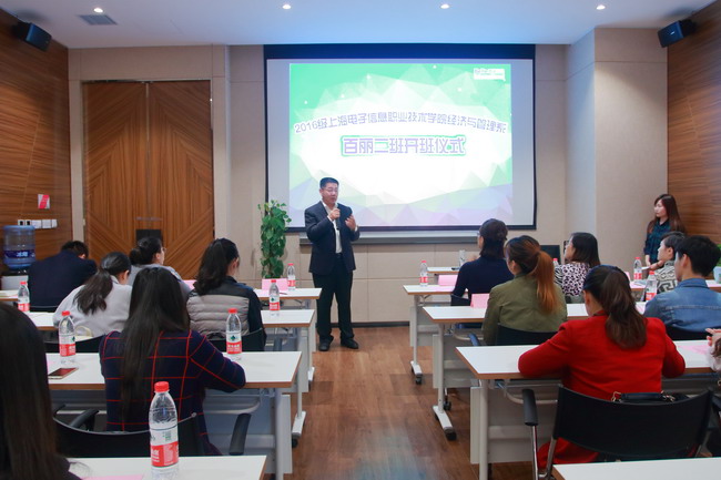11月8日下午,在百丽国际广场2楼会议室,我院经济与管理系与百丽集团上海有限公司举行了2016级百丽2班的开班仪式。