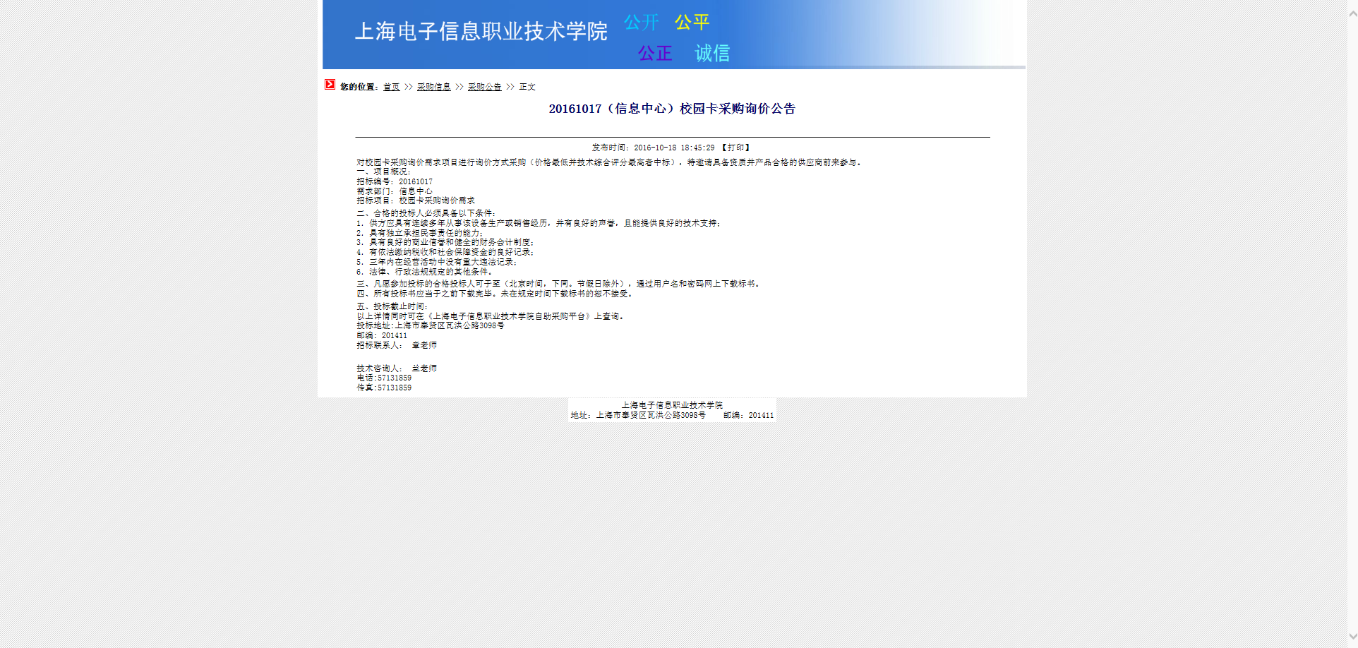 20161017(信息中心)校园卡采购询价公告