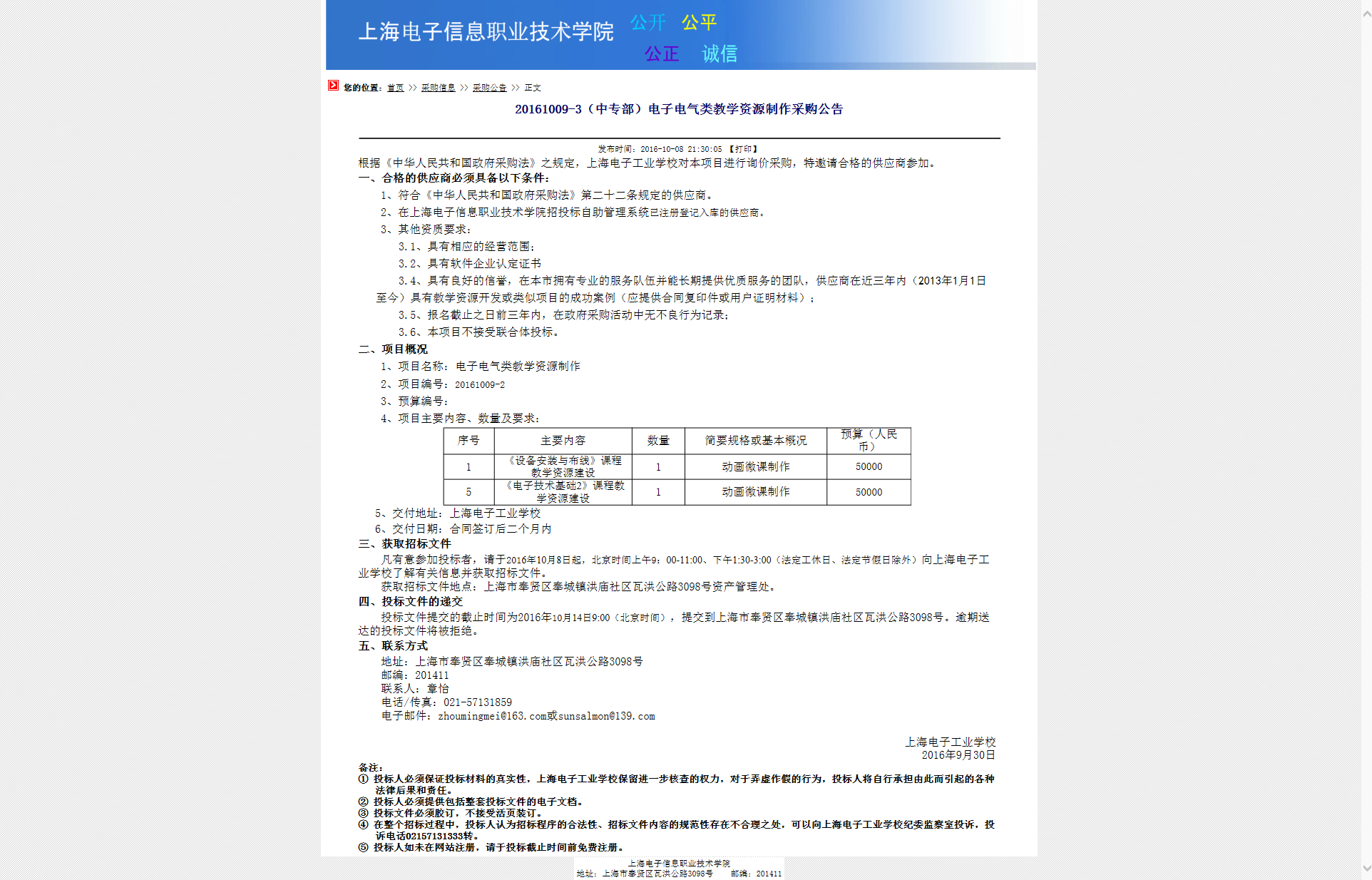 20161009-3(中专部)电子电气类教学资源制作采购公告