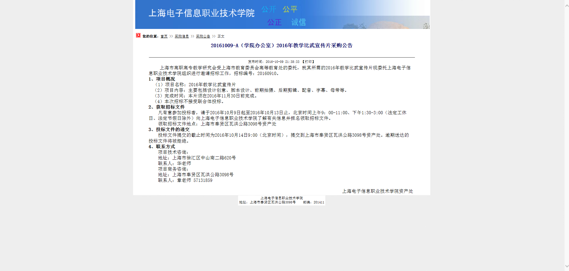 20161009-A(学院办公室)2016年教学比武宣传片采购公告