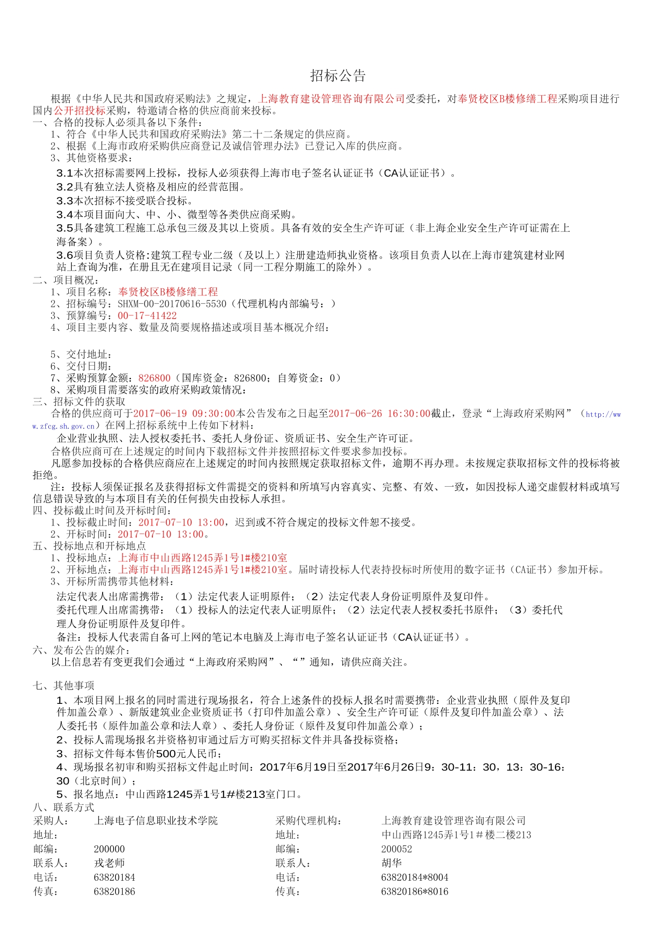 奉贤校区b楼修缮工程招标公告-1