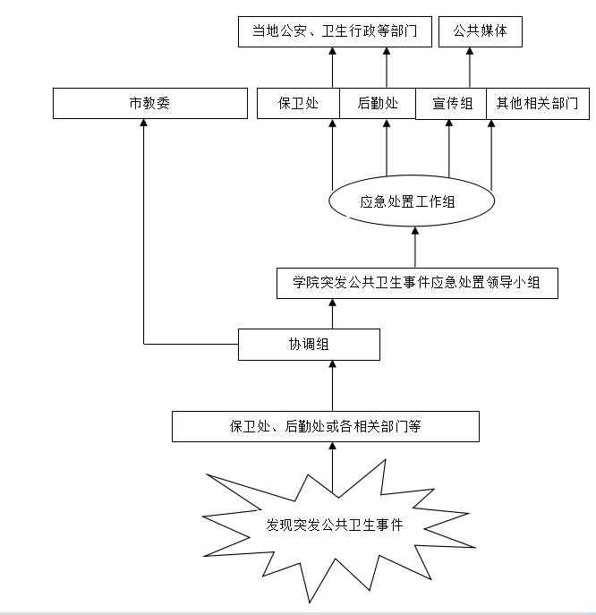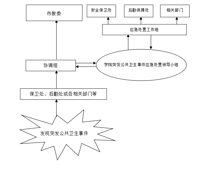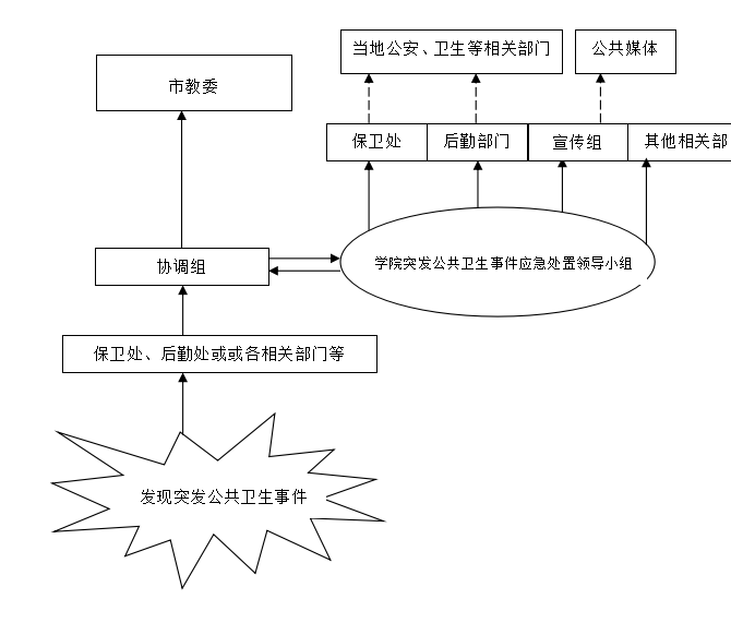 4.协调配合,快速反应。学院突发公共卫生事件应急处置领导小组要统筹协调指挥,建立快速反应和应急机制。一旦发生重大事件,确保发现、报告、指挥、处置等各环节的紧密衔接,做到反应及时,正确应对,处置果断,信息畅通。