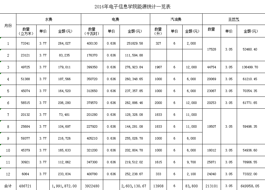 2016年1-12月能源统计表