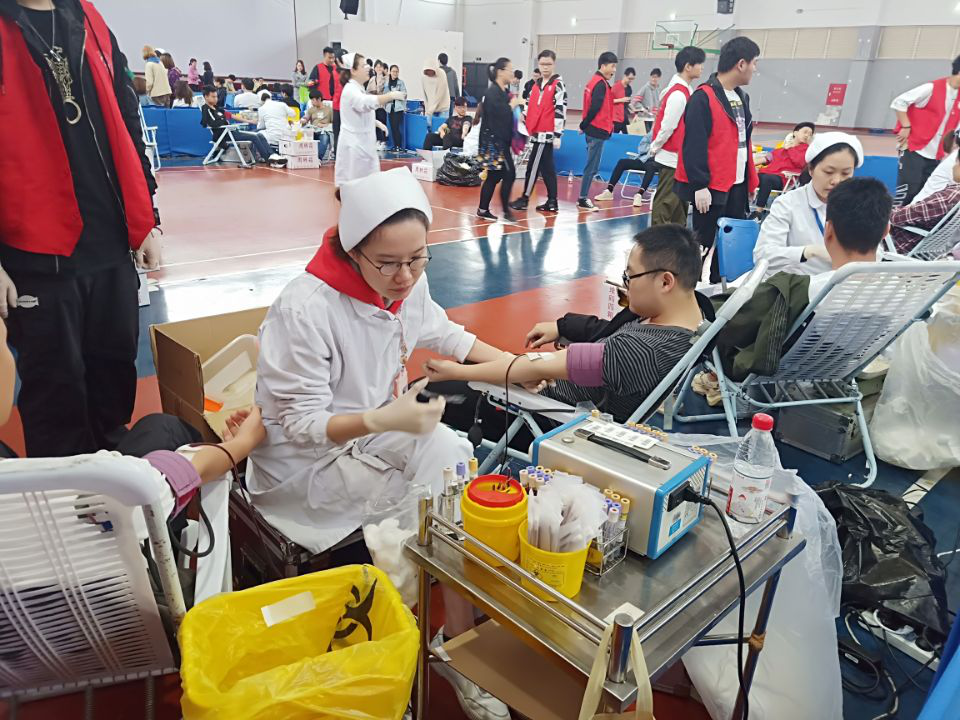 同学们蜂拥而至,排队等候,为的只是奉献出自己的一份爱。