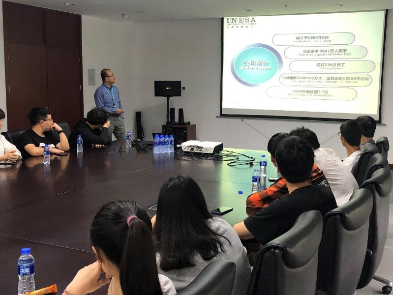 19级微电子技术新生分上下午两批来到企业,都得到了公司董事长洪斌先生的热烈欢迎。本次参访活动主要分三个环节:首先由公司技术总监李新华先生对公司的整体情况做了一个全面介绍,包括公司历史、现状及发展趋势;产品的分类、功能及技术革新等;第二部分由公司人事经理严妹红女士对企业对人才需求分析向学生做了简单的介绍;最后,公司生产经理王莲松先生分批带领学生参观公司生产线。