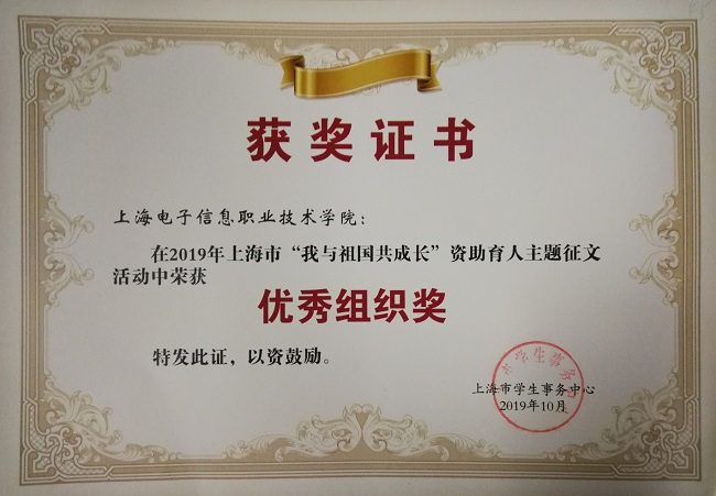 近日,上海市学生事务中心举办上海市2019年“我与祖国共成长”资助育人主题征文活动。我校荣获优秀组织奖,外语学院代宇婷同学荣获个人三等奖。