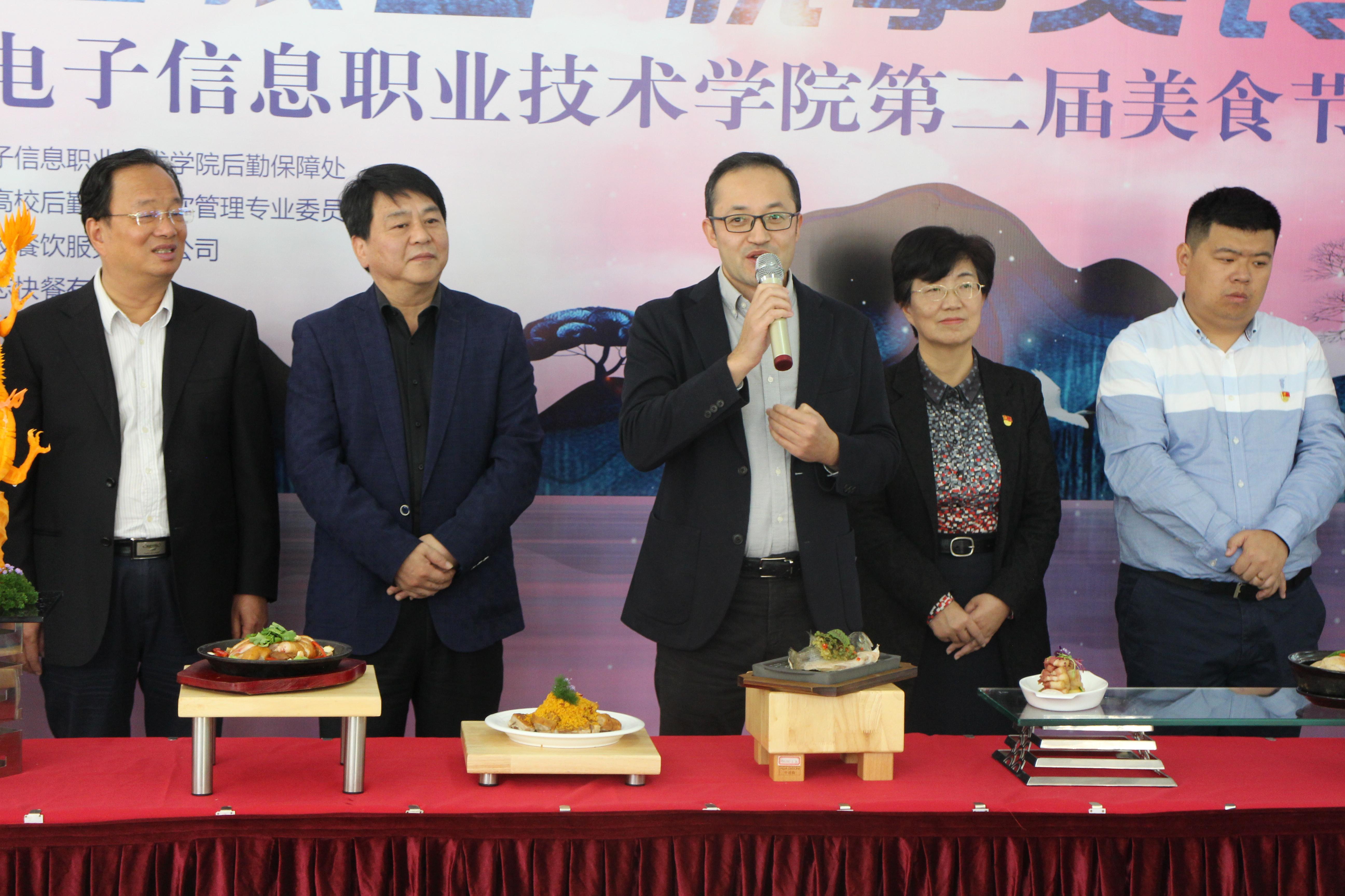 金秋十月,阳光明媚,硕果累累的美好季节,上海电子信息职业技术学院2019年第二届美食节于11月6日隆重开幕。上海市教委后保处、上海学校后勤协会餐饮管理专业委员会、兄弟院校及餐饮公司的专家、后勤保障处领导、大厨们莅临本次开幕式。开幕式由我院后勤保障处单贵处长主持,教委后保处南少华副处长和学院徐德明副院长分别致辞,由学院党委书记田钦同志宣布美食节开幕。