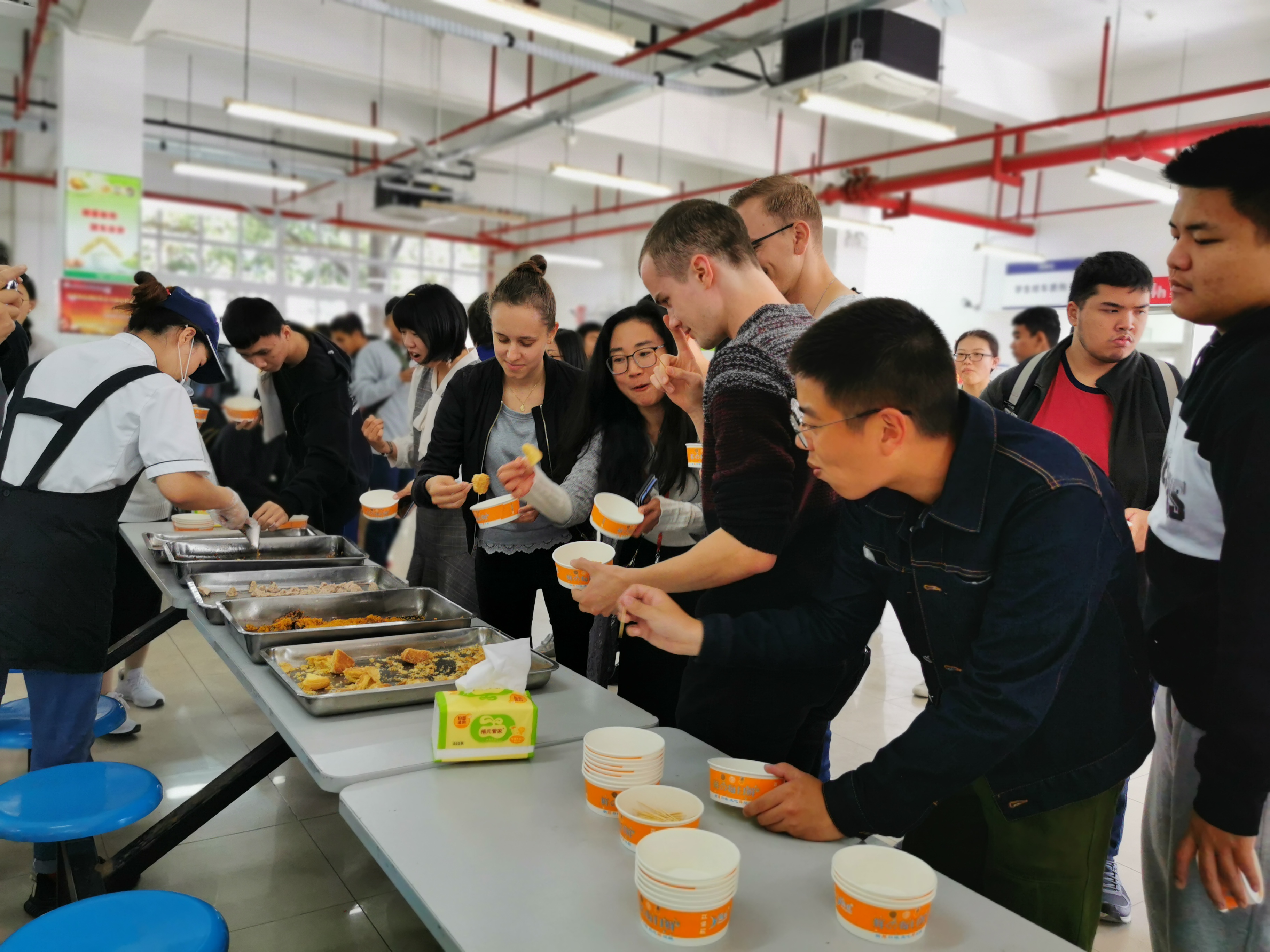 开幕式结束后,学院领导、专家们一起参观、欣赏了由大厨们精心制作的各式菜肴和精美点心,还来到试吃区亲自品尝了美味佳肴。来自泰国和德国的师生们同中国师生一起参与了美食节开幕式和其他活动。