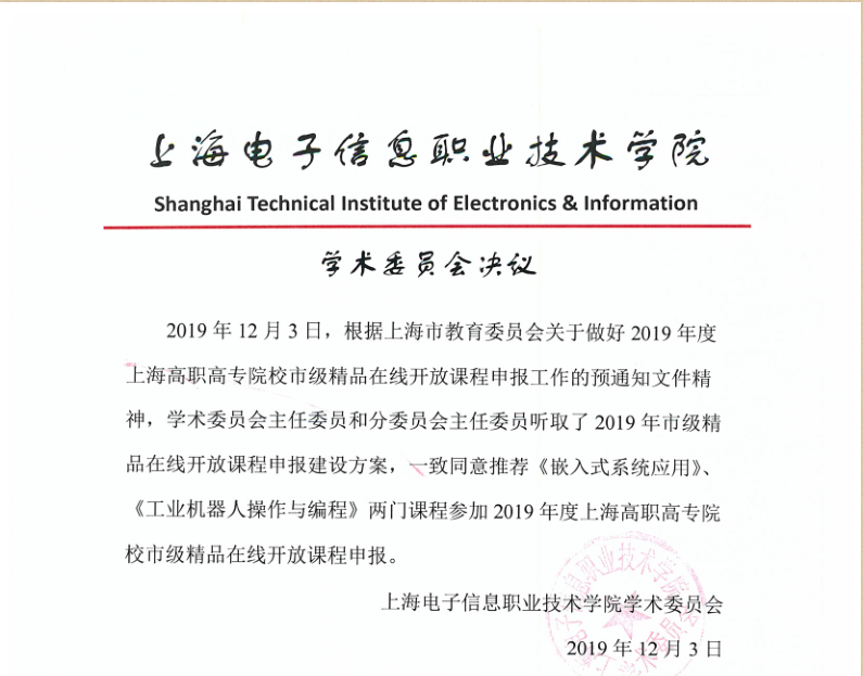 学术委员会决议(上海市级精品在线开放课程推荐)