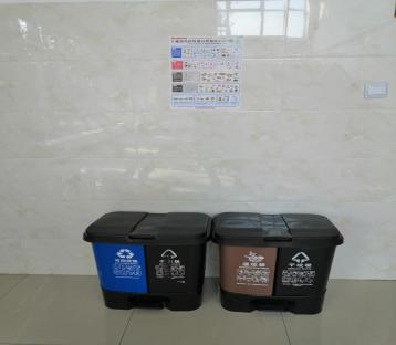 其次对校区和生活区室内外进行了垃圾分类收集容器的整改,按照设置规范可回收物、有害垃圾、湿垃圾、干垃圾四色细化。完善垃圾分类相关标识,完成各分类点位的设施布置,保障分类设施统一规范。