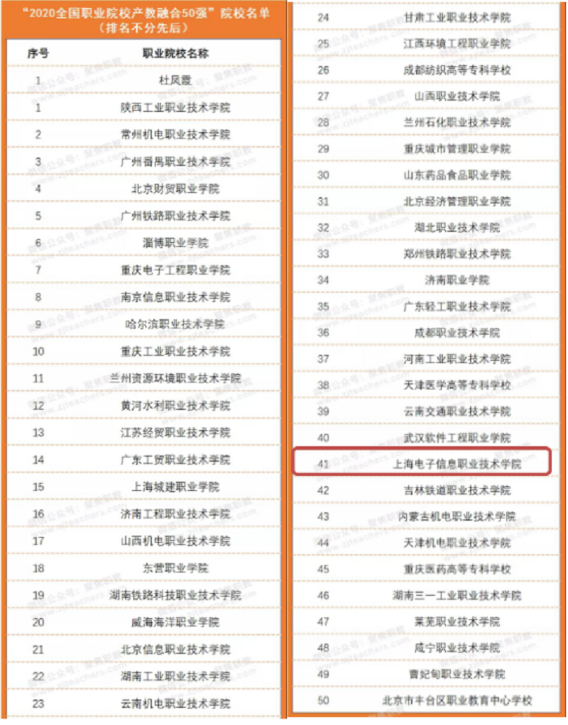 为表彰和肯定在产教融合领域成效显著,在校企合作方面模式创新,为服务国家战略、服务区域经济社会发展、服务行业企业、服务社会等方面做出重要贡献,具有借鉴经验和示范引领作用的一批职业院校,推动职业教育高质量发展,亚洲教育论坛组委会决定举办“2020全国职业院校产教融合50强”评选活动。我校组织力量积极申报、参与评选,经评选工作委员会初评、复评,最终成功入选。该项荣誉是对我校在深化产教融合、校企合作方面工作的高度肯定,同时也是学校“双一流”院校建设的机遇与鞭策,需要我们不断求索,突破创新,打造电子信息领域职业教育优质资源和特色品牌。