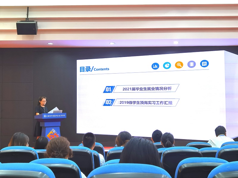 校企合作处就业负责人介绍了2021届毕业生就业工作及2019级学生顶岗实习工作开展情况;机械与能源工程学院、经济与管理学院先后介绍了本学院就业工作经验;电子技术与工程学院、通信与信息工程学院、中德工程学院先后介绍并分享了学生就业工作经验。
