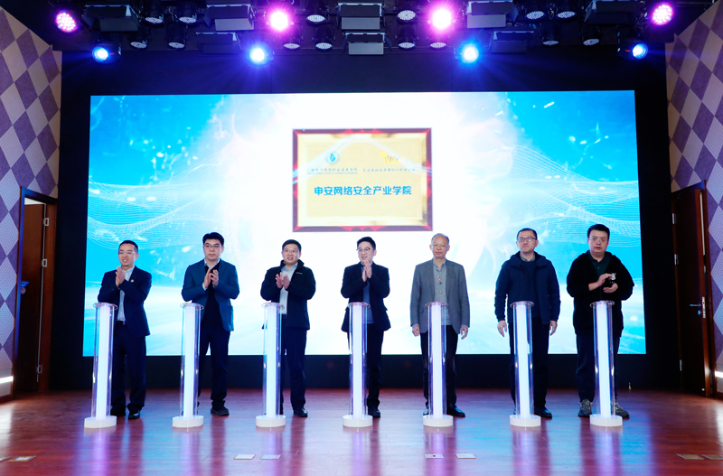 马建超、束金龙、李海伟、吴新华、屈强、韩争光、赵坚等领导共同为申安网络安全产业学院成立揭牌。