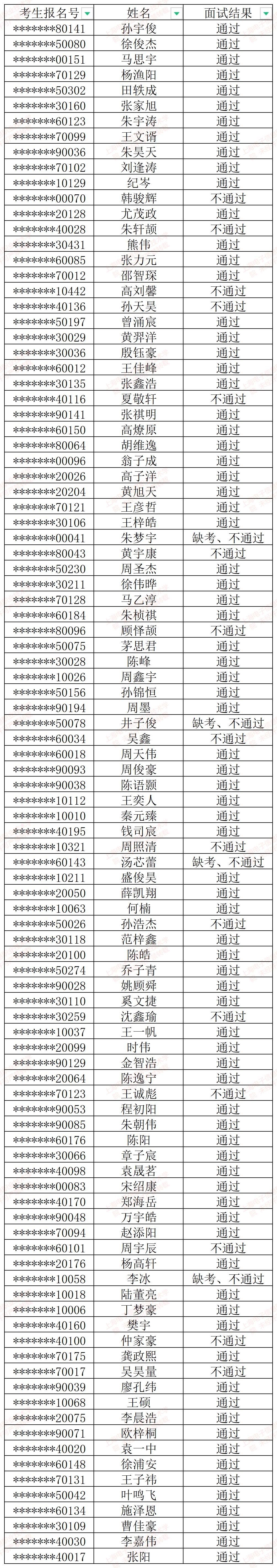 2022年消防救援技术(五年一贯制)专业报考资格面试已结束,现将结果公布。具体如下图所示。