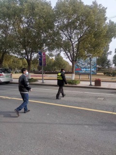 对测温仪突发体温异常人员(屠建平老师扮演),立即由学校志愿者(由食堂员工扮演)现场登记复测后,陪同前往发热预检分诊室(由9号楼东门进入101室)。