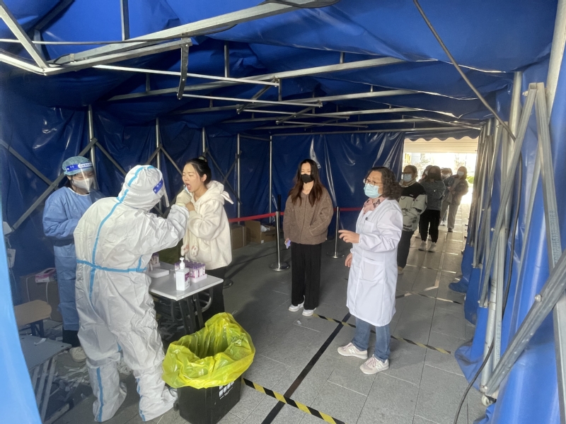 过去的这一个月来,学校医务室的医护人员成为了每一位师生内心的“守护天使”。在留校医护人员在人手少、工作量却大幅增加、条件有限的现实情况下,在校的医务人员们每天考虑地却是如何服务广大在校师生,如何最好的医疗保障提供到每一个角落。校医务室每天接听超过50个电话,在校值守医生往往需要连续工作十余小时,除了耐心解答来电师生的问题外,还要协调好师生的送医、核酸检测、返校集中观察、以及联系物业及时做好消杀等事宜,经常顾不上喝一口水,几乎每一位医护人员清晨醒来都顶着重重的黑眼圈。这一个月来,核酸检测的任务更是接连不断。仅3月28日和30日两天,医务室共计完成了奉贤校区全体师生以及普陀校区、闵行校区部分学生和全体后勤管理保障人员近10000人次的核酸检测采样工作。迄今为止,总计完成各校区核酸采样26000余人次,切实保障了在校师生的安全和健康。