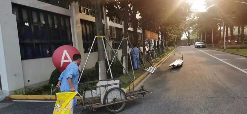 闵行校区内原本的实木树撑由于多年的风吹日晒都已经逐步腐烂,物业公司统一采购不锈钢管全部进行更换;校区内屋顶以及落叶的屋顶和排水槽,安排师傅一早清理到位,对于狭窄处甚至直接用手清理,每次工作结束每个师傅都如同“泥人”;对于校区正门及2号宿舍楼南出口的易积水“老大难”问题,安排安保人员及工程部十余人灌装沙袋200余包,并第一时间放置到位,力求今年的防汛防台工作能平稳度过,不出现一丝一毫的差池。