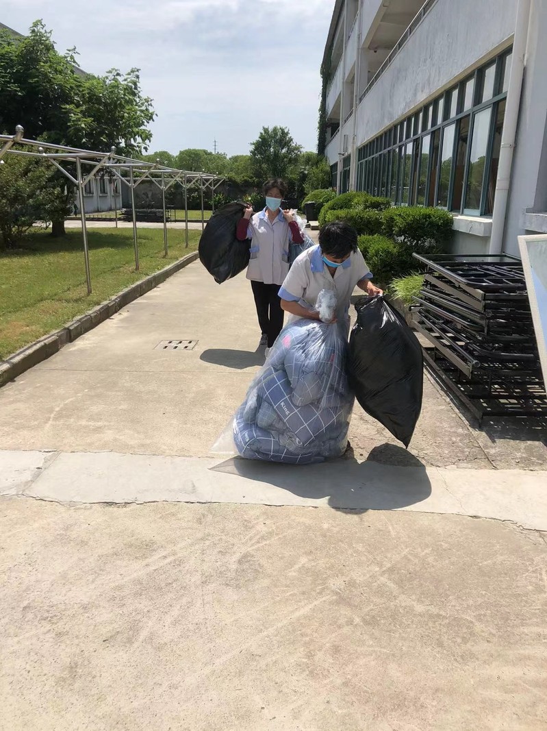 和闵行校区物业一样,普陀校区上房物业也积极落实后勤保卫处关于防汛防台工作的部署,安排相关安保及工程部人员在气温条件相对适宜的室内进行防汛沙袋的灌装工作,为后续即将到来的防汛防台工作做好万全准备。