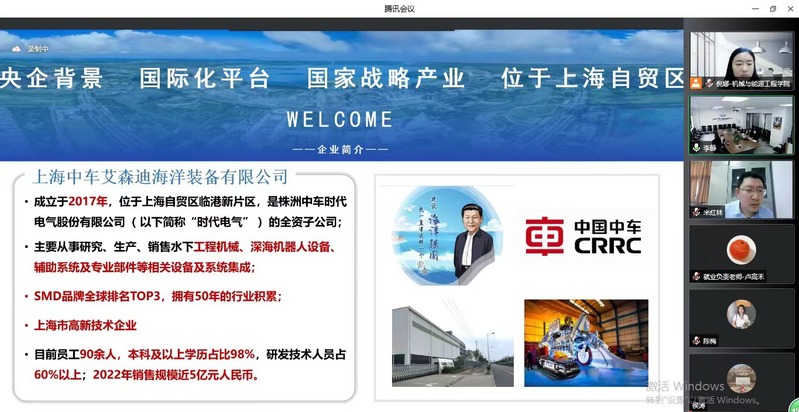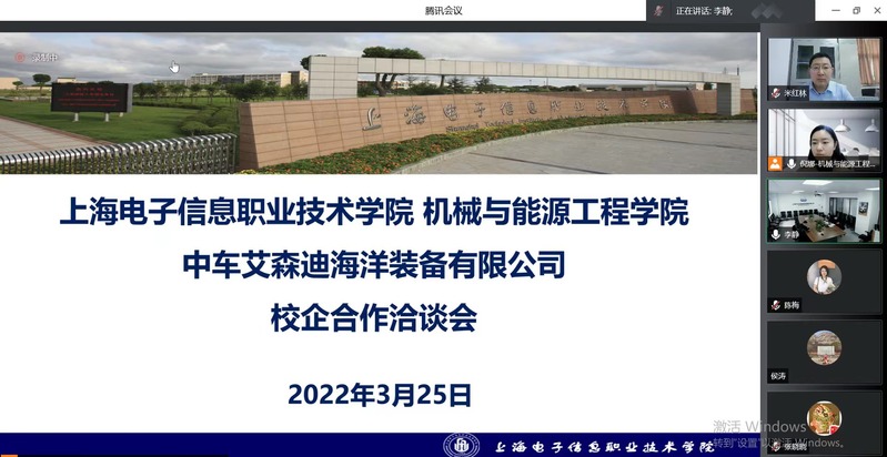 3月25日,机械与能源工程学院与上海中车艾森迪海洋装备有限公司成功召开了线上校企合作洽谈会。出席本次洽谈会的有机械与能源工程学院党总支副书记、院长米红林,副书记、副院长倪娜,副院长陈永平,上海中车艾森迪海洋装备有限公司制造部副总经理桂建明,综合管理部兼人力资源部部长李浩,薪酬兼安全经理严佳,招聘经理李静。机械学院学生管理办公室、就业负责老师和辅导员参加会议,会议由倪娜主持。