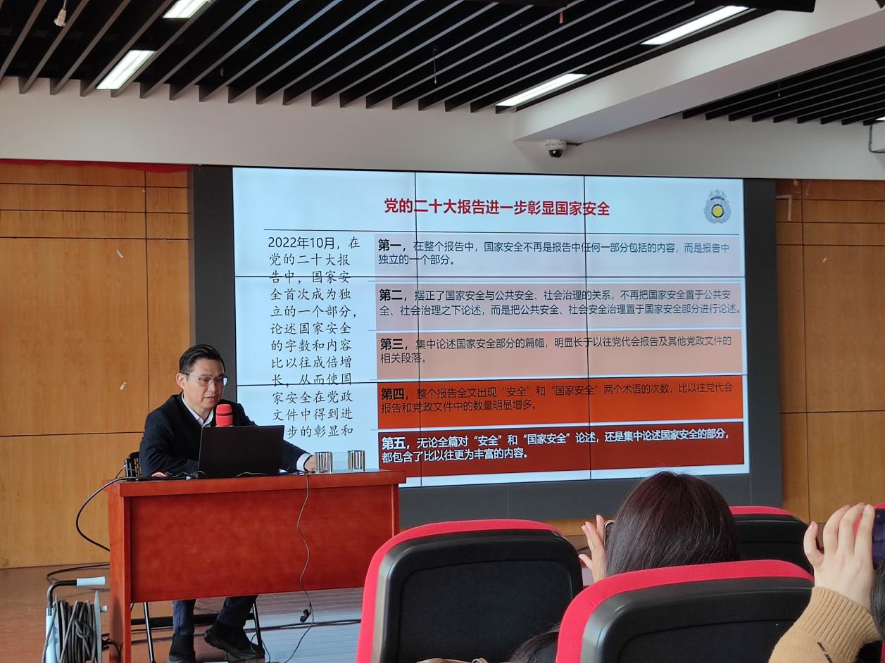 2023年4月10 日,为切实增强广大师生国家安全意识,后勤保卫处邀请上海公安学院的国家安全专业负责人姚东升副教授,在奉贤校区I楼401开展了“4.15全民国家安全教育日”专题讲座。各二级学院学管办主任、辅导员和学生党员代表参加了讲座。