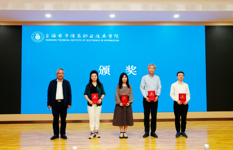 徐德明副院长代表学校为相关工作贡献者颁奖。高晓昧、郭虹铄、李康康、陈文君团队获学校卡通人物形象“沪小电”设计突出贡献奖;王浩哲获学校卡通人物形象“沪小电”最佳配音奖;吴亚人、马宏亮、蔡光跃三人获学校金山、普陀校区道路、建筑物命名方案入围奖。