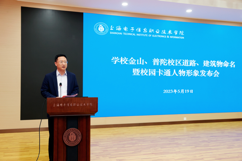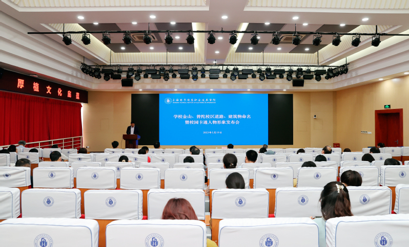 为进一步彰显学校“尚德修能 知行合一”校训精神,打造良好的校园文化环境,丰富学校文化内涵,增强广大师生凝聚力和向心力,5月19日中午,学校在C108报告厅举办学校金山、普陀校区道路、建筑物命名暨校园卡通人物形象发布会。发布会由党委副书记、副院长张涛主持,以上海教育电视台专题片《在这里,“匠文化”滋养工匠人才培养》拉开序幕。