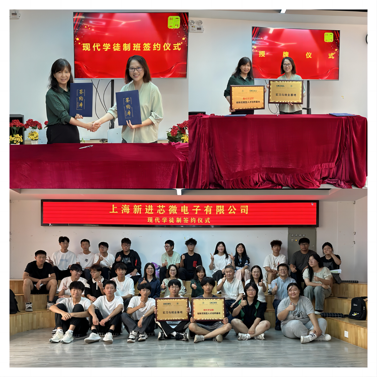 电子技术与工程学院和上海新进芯微电子有限公司于9月28日在S105智慧工厂举行了现代学徒制开班仪式,校企双方当场完成了校企合作协议的签约。