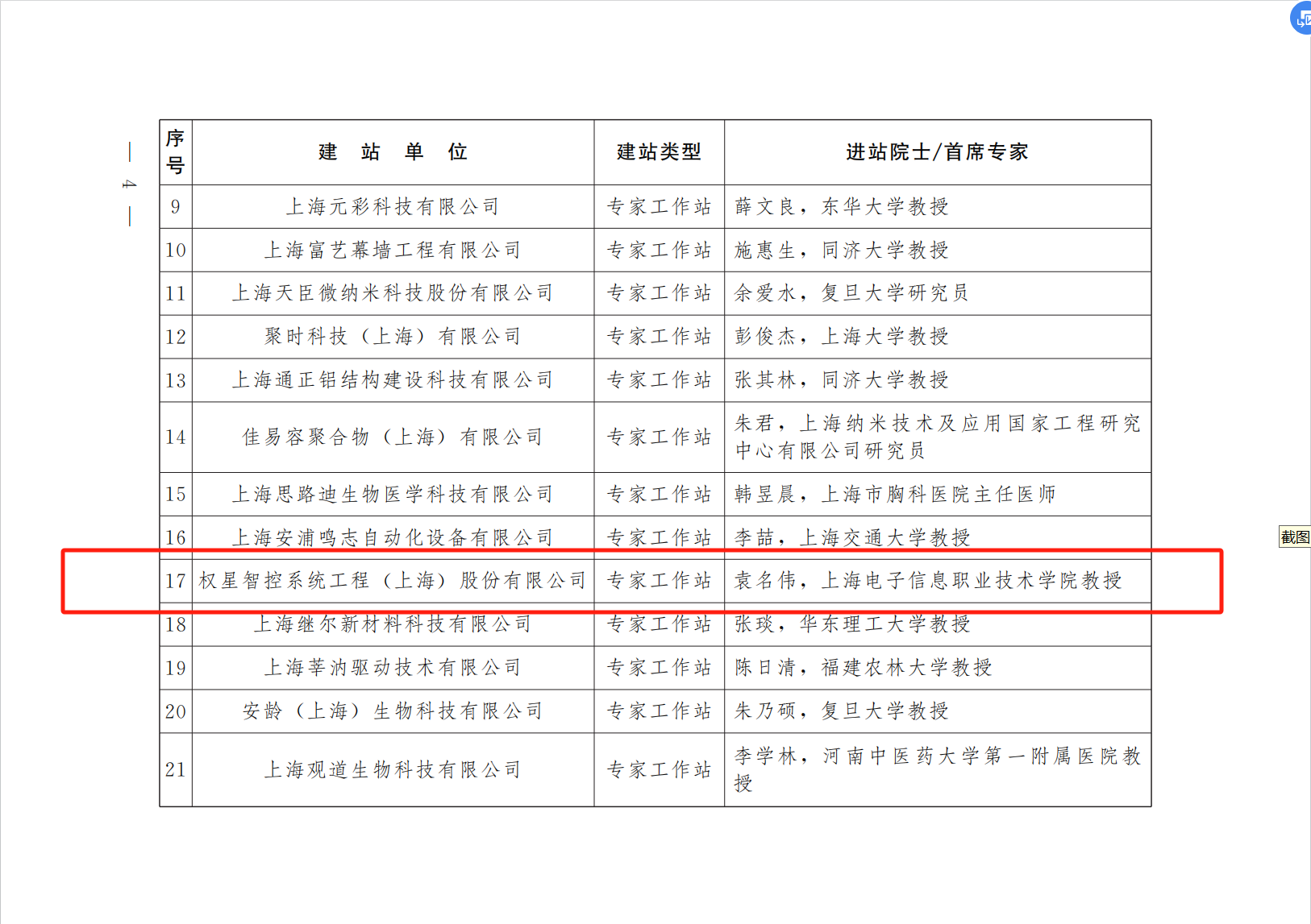 近日,上海市科学技术协会院士(专家)工作站指导办公室发布《2023年度第三批次院士(专家)工作站建站单位名单》。我校机械与能源工程学院袁名伟教授作为首席专家入驻权星智控系统工程(上海)股份有限公司,并获批建设院士(专家)工作站。这是学校长期以来积极探索技术服务输出、推进高职院校科技成果转移转化的重大成果。自此,我校已有两位首席专家入驻上海市院士(专家)工作站。